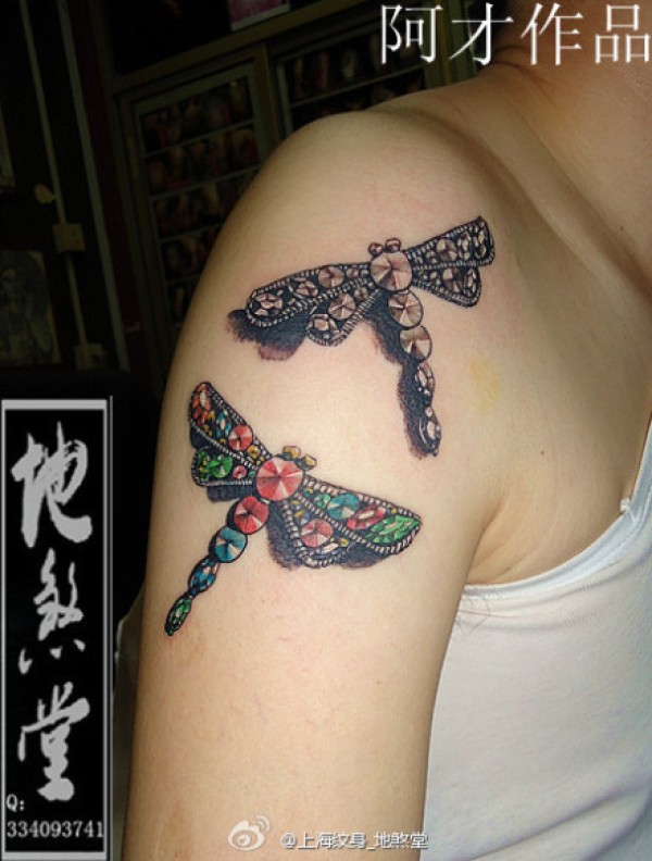 手臂漂亮精美的钻石蜻蜓纹身图案_臂部纹身图案大全_纹身图吧