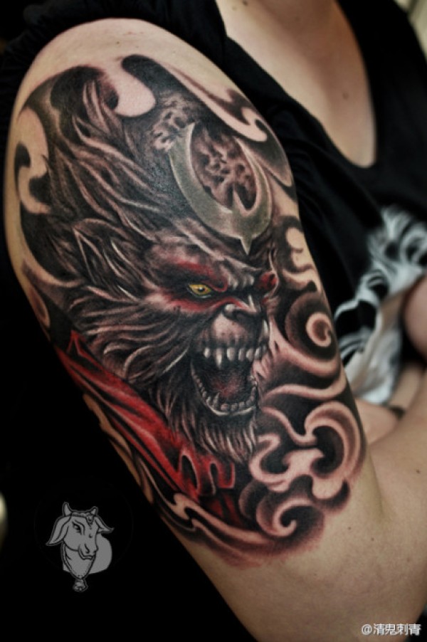 男生手臂凶悍霸气的孙悟空纹身图案_臂部纹身图案大全_纹身图吧