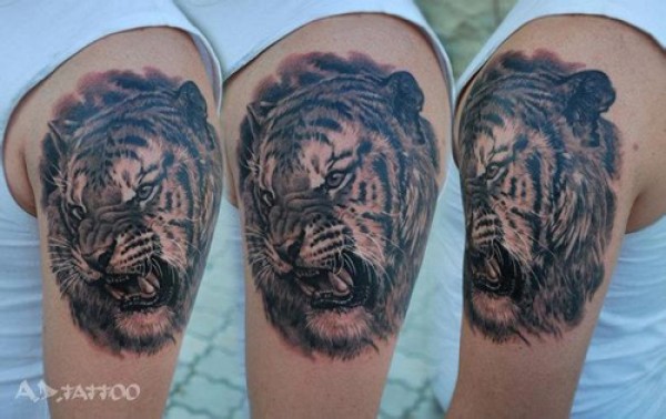 男人手臂凶悍的虎头纹身图案_臂部纹身图案大全_纹身图吧