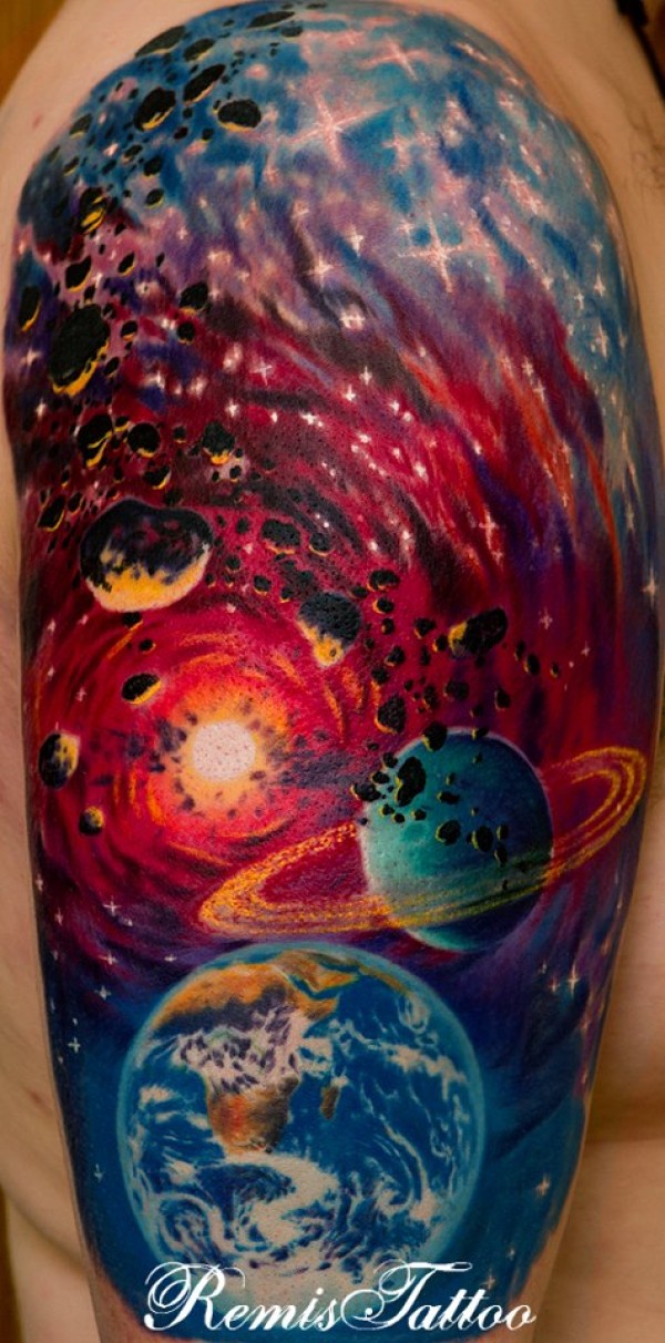 手臂霸气超酷的彩色星空纹身图案_臂部纹身图案大全_纹身图吧