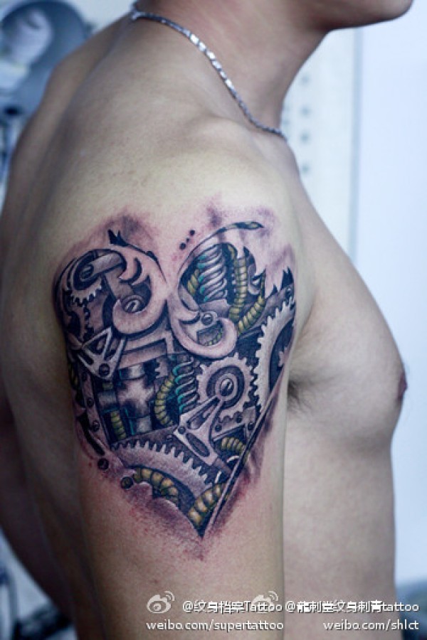 男人手臂帅气经典的爱心机械臂纹身图案_臂部纹身图案大全_纹身图吧