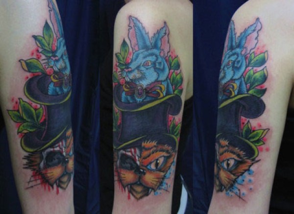 手臂邪恶的猫咪与兔子纹身图案_臂部纹身图案大全_纹身图吧