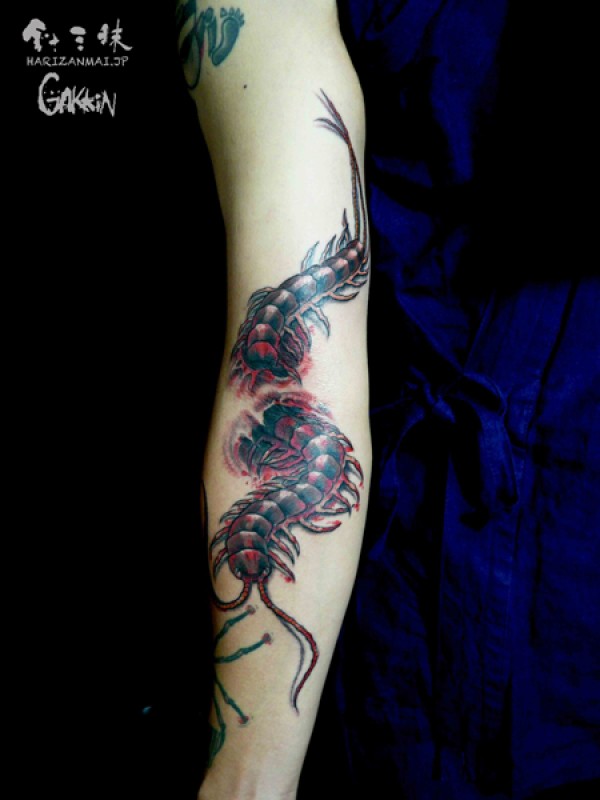 手臂经典帅气的蜈蚣纹身图案_臂部纹身图案大全_纹身图吧