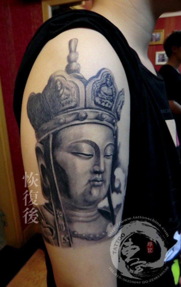 男人手臂经典的石雕观影头像纹身图案_臂部纹身图案大全_纹身图吧