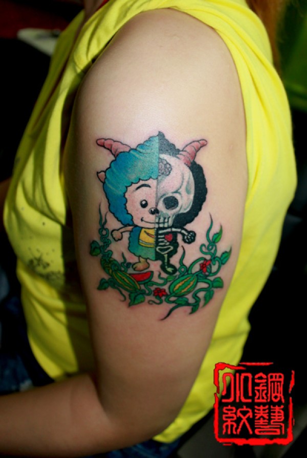 手臂可爱的懒羊羊纹身图案_臂部纹身图案大全_纹身图吧