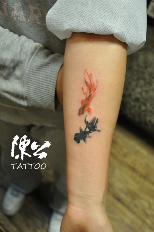 手臂手臂彩色流行的小鱼纹身图案_臂部纹身图案大全_纹身图吧