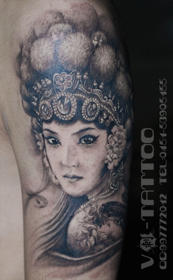 男生手臂漂亮的美女花旦纹身图案_臂部纹身图案大全_纹身图吧