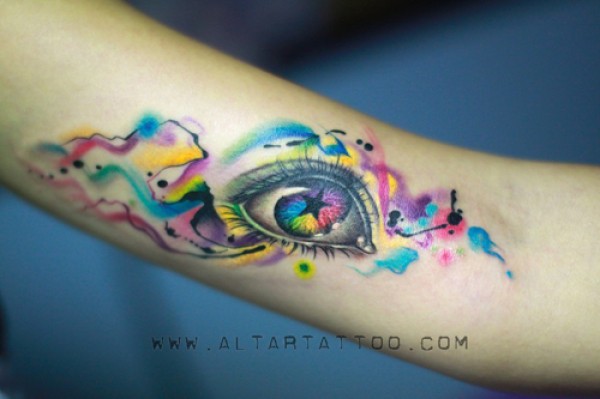 手臂很酷的一款彩色眼睛纹身图案_臂部纹身图案大全_纹身图吧