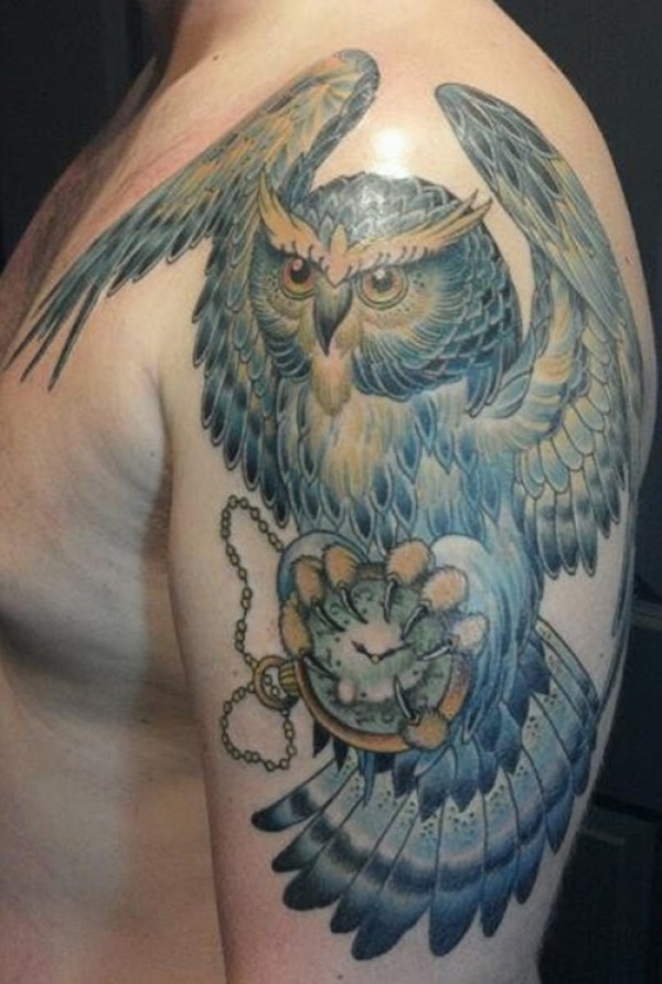 男生手臂经典帅气的猫头鹰纹身图案_臂部纹身图案大全_纹身图吧