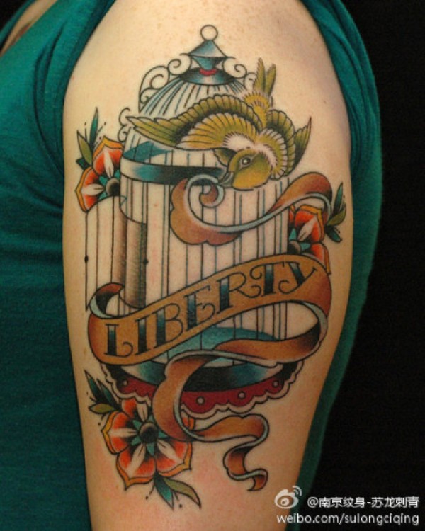 手臂唯美好看的小鸟与鸟笼纹身图案_臂部纹身图案大全_纹身图吧