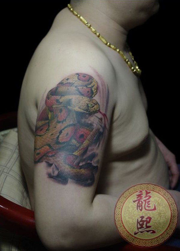 男人手臂经典的彩色蛇纹身图案_臂部纹身图案大全_纹身图吧