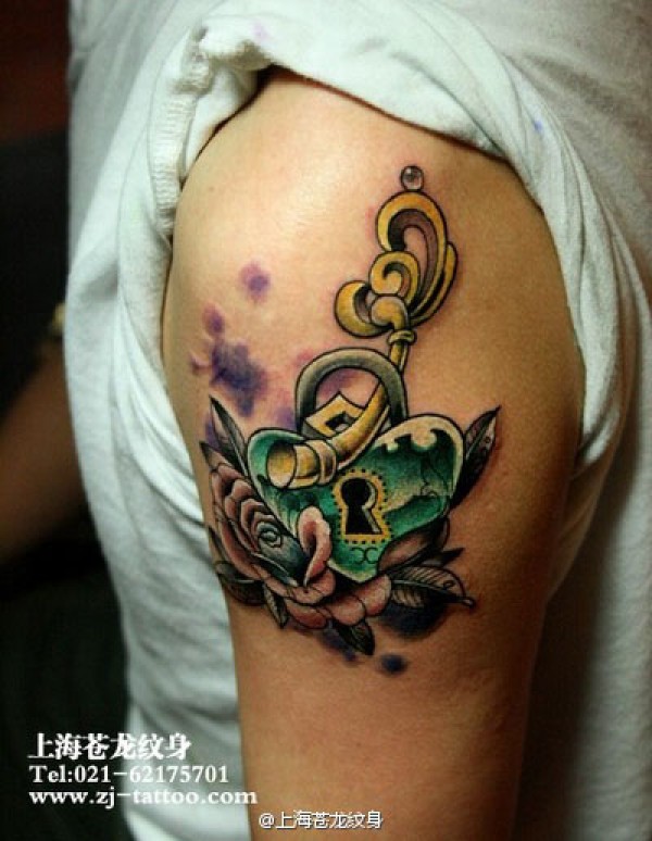 手臂好看的爱心锁与钥匙纹身图案_臂部纹身图案大全_纹身图吧