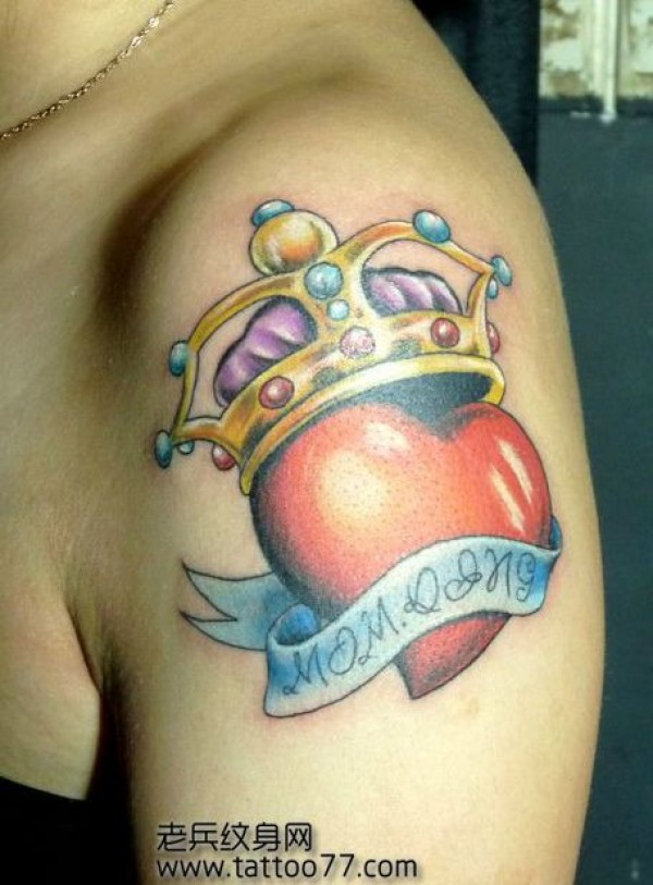 手臂一款彩色爱心与皇冠纹身图案_臂部纹身图案大全_纹身图吧