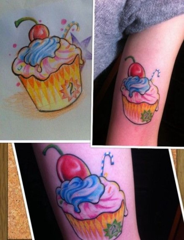美女手臂一款彩色冰激凌纹身图案_臂部纹身图案大全_纹身图吧