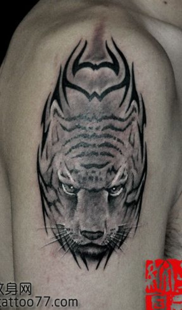 手臂经典帅气的虎头纹身图案_臂部纹身图案大全_纹身图吧