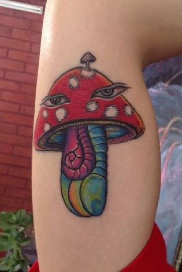 手臂一款彩色蘑菇纹身图案_臂部纹身图案大全_纹身图吧