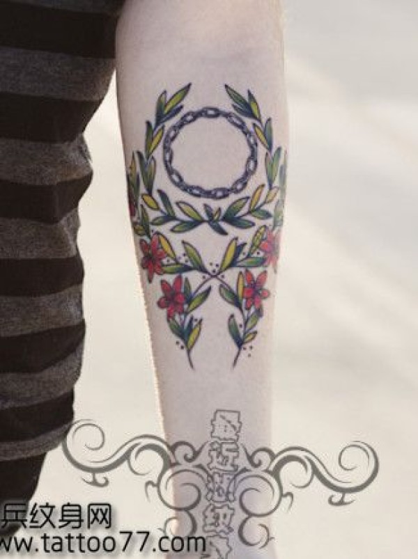 手臂一款精美的花环纹身图案_臂部纹身图案大全_纹身图吧