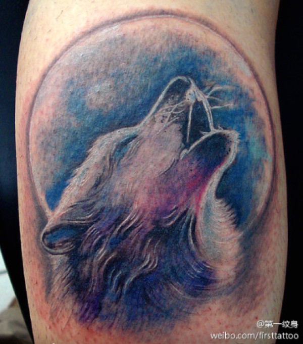 手臂一款彩色狼头纹身图案_臂部纹身图案大全_纹身图吧