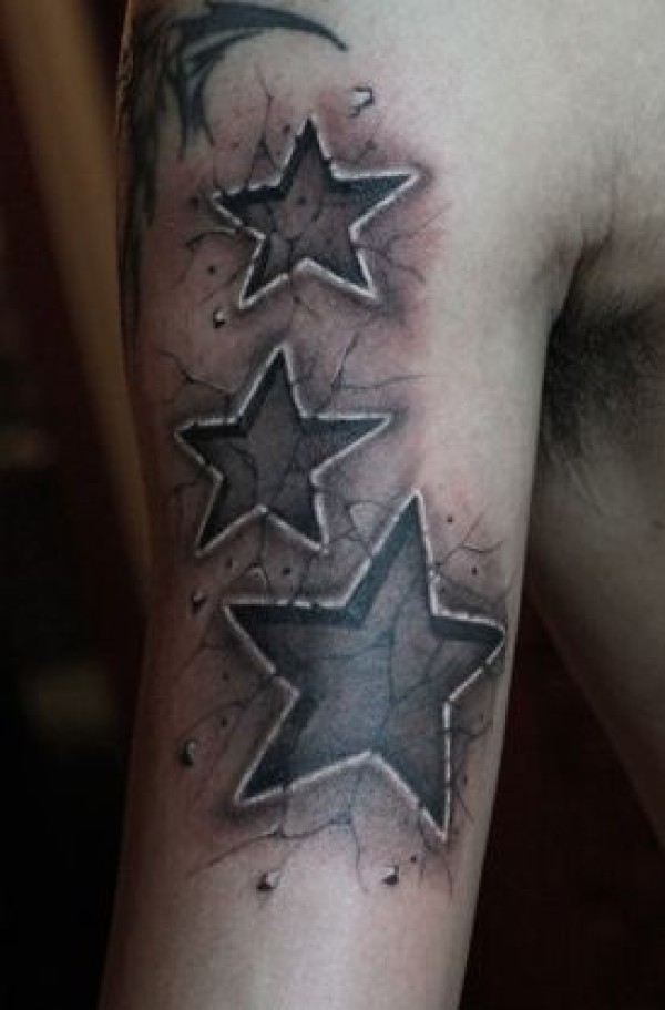 手臂经典的一款烙印加地裂效果五角星纹身图案_臂部纹身图案大全_纹身图吧