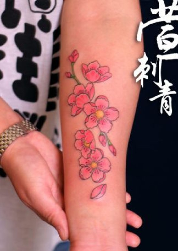 手臂樱花纹身_臂部纹身图案大全_纹身图吧