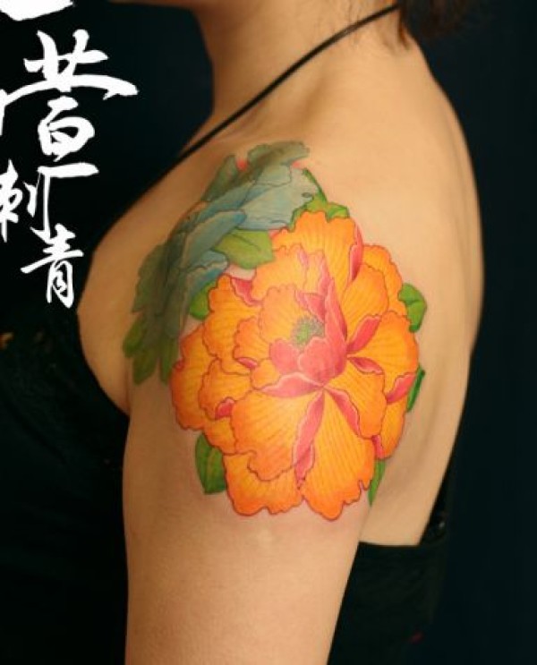 女孩子手臂彩色牡丹花纹身图案_臂部纹身图案大全_纹身图吧