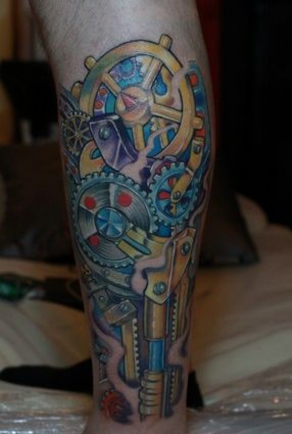 腿部超酷的彩色机械臂纹身图案_臂部纹身图案大全_纹身图吧