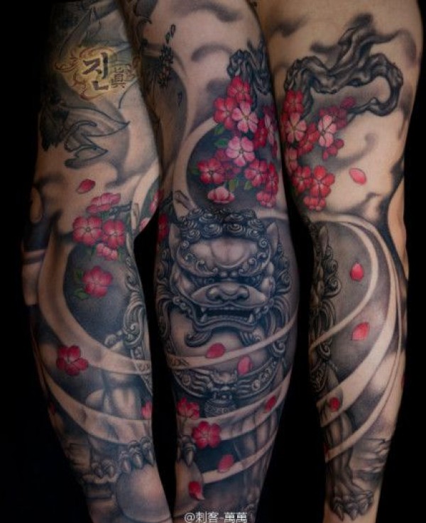 一款手臂中国古典石狮子纹身图案_臂部纹身图案大全_纹身图吧