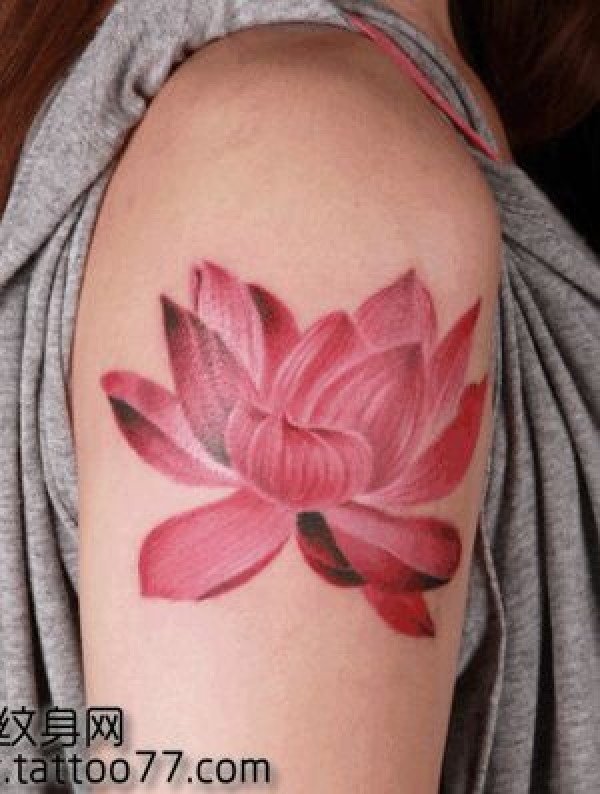 女孩子手臂彩色莲花纹身图案_臂部纹身图案大全_纹身图吧