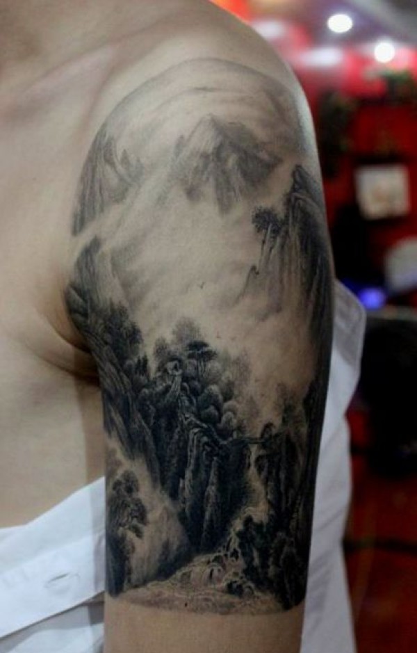 手臂好看的山水画纹身图案_臂部纹身图案大全_纹身图吧