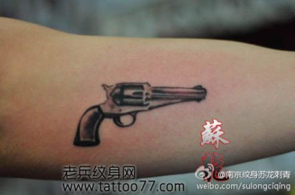 一款可爱的手臂小手枪纹身图案_臂部纹身图案大全_纹身图吧