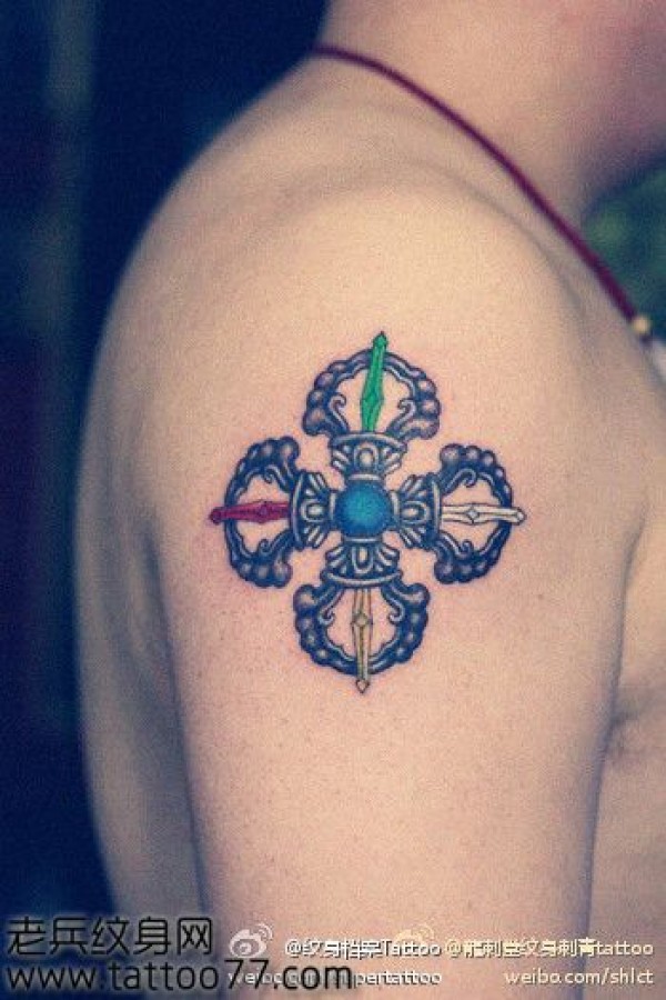一款手臂彩色金刚杵纹身图案_臂部纹身图案大全_纹身图吧
