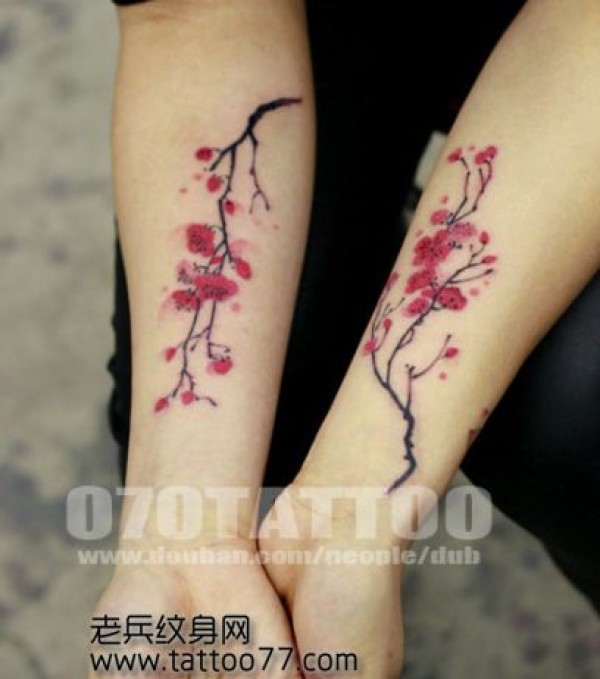 唯美的手臂彩色梅花纹身图案_臂部纹身图案大全_纹身图吧