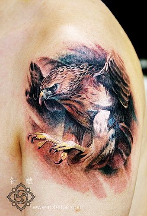 专业老兵纹身店手臂彩色老鹰纹身图案图片大_臂部纹身图案大全_纹身图吧
