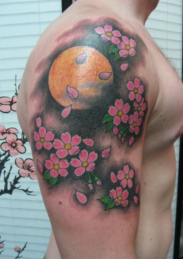 武汉纹身店手臂樱花纹身图案图片_臂部纹身图案大全_纹身图吧