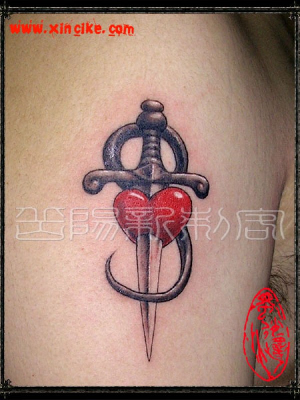 湖北随州文身店大臂匕首穿心纹身图案图片_臂部纹身图案大全_纹身图吧