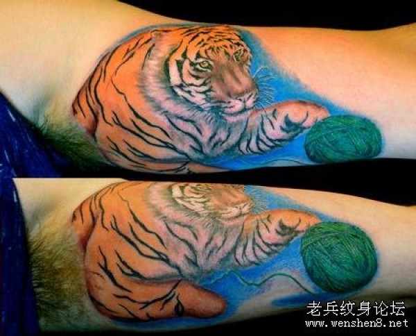 一款手臂彩色老虎纹身图案纹身图片_臂部纹身图案大全_纹身图吧