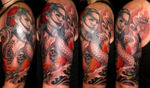一款手臂古典美女蛇纹身图案纹身图片_臂部纹身图案大全_纹身图吧