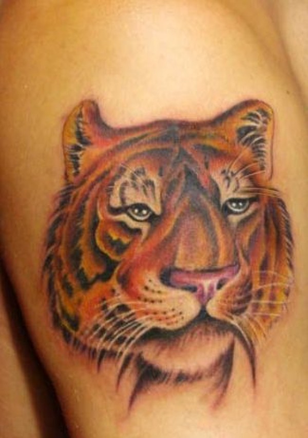 一款霸气帅气的手臂彩色老虎虎头纹身图案纹身_臂部纹身图案大全_纹身图吧