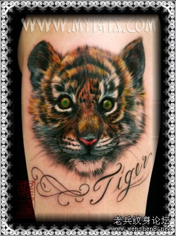 手臂彩色老虎纹身图案纹身图片_臂部纹身图案大全_纹身图吧