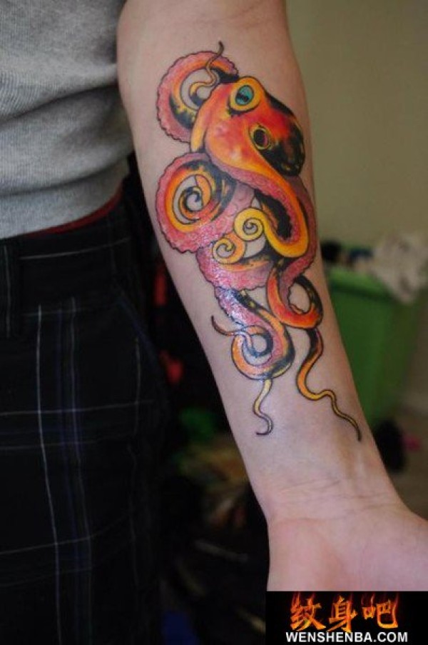 小臂彩色小章鱼_臂部纹身图案大全_纹身图吧