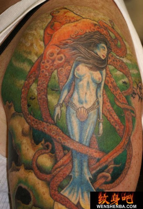 手臂美人鱼章鱼纹身_臂部纹身图案大全_纹身图吧