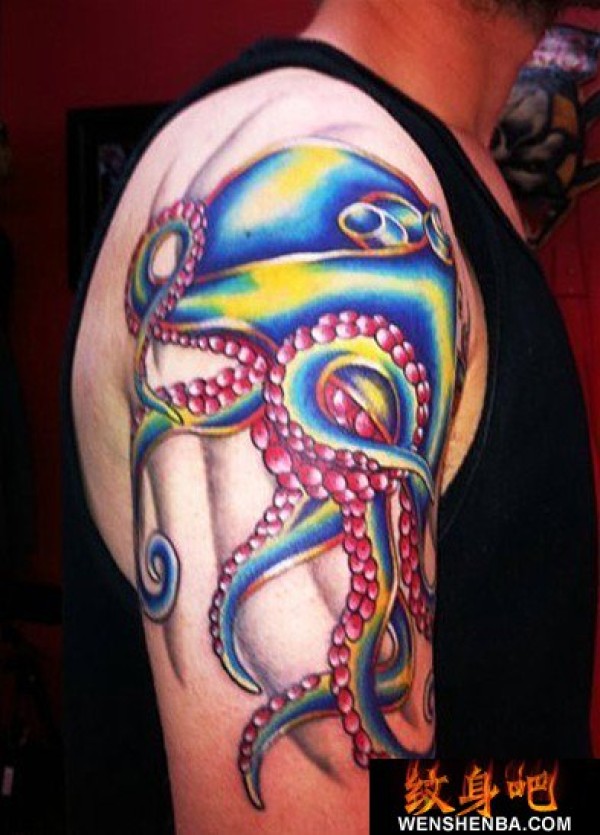 大臂蓝色章鱼_臂部纹身图案大全_纹身图吧