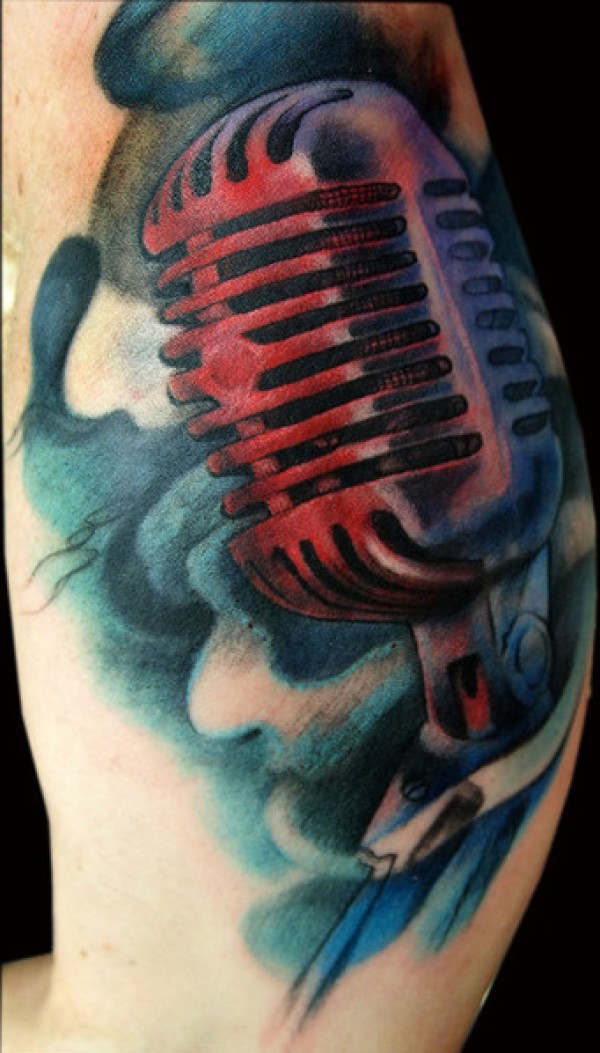 大臂彩色麦克风_臂部纹身图案大全_纹身图吧