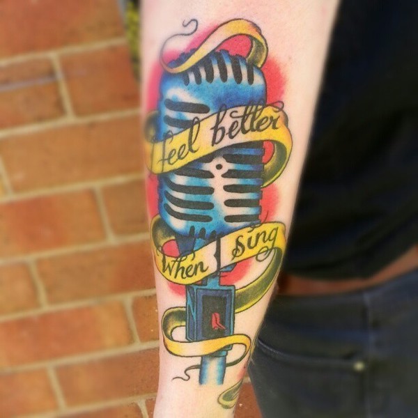 手臂蓝色麦克风纹身_臂部纹身图案大全_纹身图吧