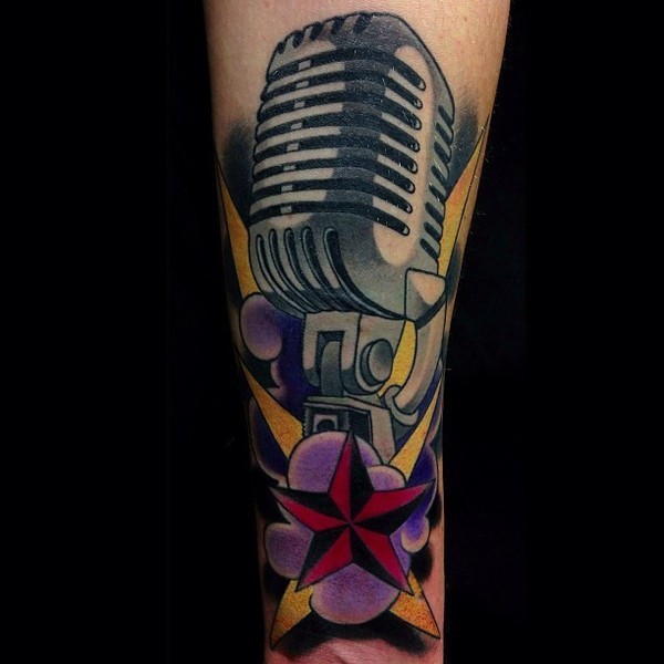 手臂漂亮的麦克风纹身_臂部纹身图案大全_纹身图吧