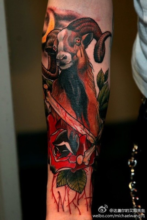 小臂山羊彩色纹身_臂部纹身图案大全_纹身图吧