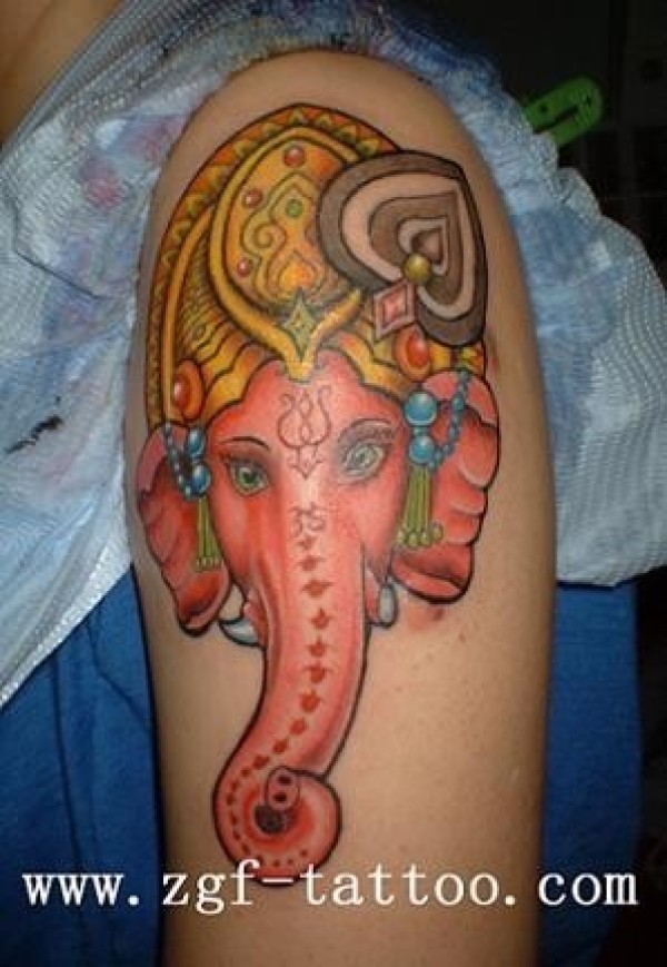 手臂彩色象神纹身1_臂部纹身图案大全_纹身图吧