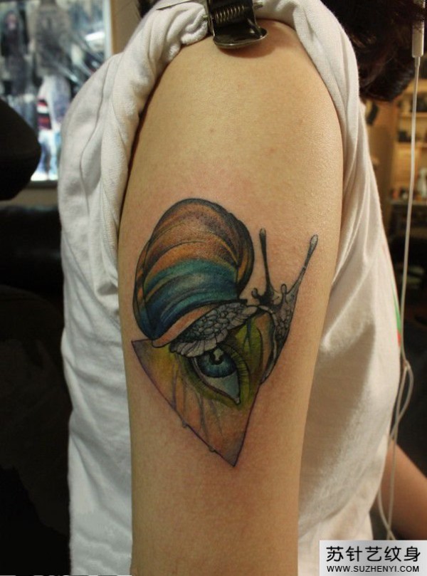 蜗牛三角眼手臂纹身_臂部纹身图案大全_纹身图吧