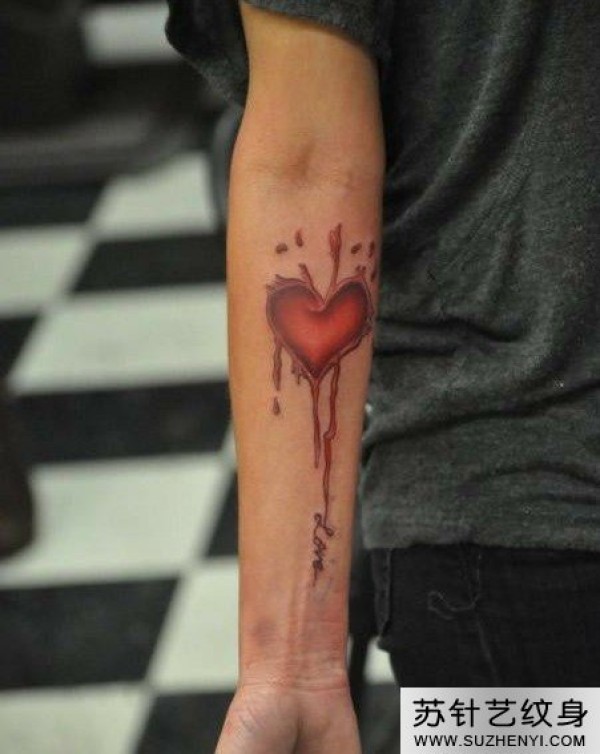 手臂在滴血心脏纹身_臂部纹身图案大全_纹身图吧
