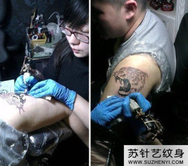 手臂凶猛虎头纹身_臂部纹身图案大全_纹身图吧